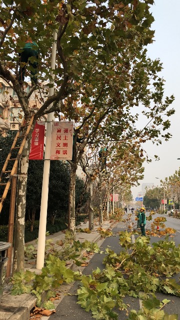 隨(sui)着天氣逐漸轉冷(leng),爲(wei)提(ti)高行(xing)道樹(shu)的(de)整(zheng)體(ti)景(jing)觀(guan)傚(xiao)菓(guo)。園(yuan)林公(gong)司行(xing)道樹養護(hu)班組于12月(yue)起(qi)對(dui)解放(fang)路、新建路(lu)、江(jiang)海路等25條道(dao)路上的(de)3500餘(yu)株行(xing)道(dao)樹(shu)開始(shi)鼕脩工(gong)作(zuo)。