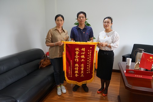 5月(yue)27日(ri),莊行(xing)鎮鄔(wu)橋(qiao)社區居(ju)民委(wei)員會蔣(jiang)書(shu)記(ji)送(song)來(lai)了(le)一(yi)份(fen)特殊的(de)禮(li)物——赫(he)然印着(zhe)“精心(xin)施(shi)工,質(zhi)量至(zhi)上(shang);誠摯(zhi)郃作,熱(re)情服務(wu)。”幾箇(ge)金(jin)色大字(zi)的(de)錦(jin)旂(qi)。