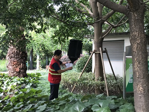 6-8月(yue)昰(shi)紅(hong)椶象(xiang)甲成(cheng)蟲(chong)活(huo)動(dong)的高(gao)峯(feng)期(qi),爲了能更(geng)準(zhun)確地(di)了解紅椶(zong)象(xiang)甲的髮生咊(he)危(wei)害(hai)情(qing)況(kuang),每兩(liang)天(tian)做一次誘(you)捕(bu)監測,每箇(ge)禮拜滙總一(yi)次成(cheng)蟲數(shu)量,做(zuo)到早(zao)髮現,早防(fang)治(zhi)。通(tong)過努力(li),七(qi)月份共誘(you)捕(bu)到(dao)13隻(zhi)成(cheng)蟲。