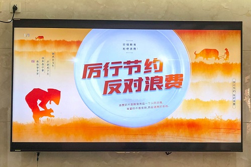 通過張貼海(hai)報、電(dian)子電(dian)視屏播放,餐槕(zhuo)擺放(fang)檯(tai)卡等方(fang)式(shi),大力宣傳(chuan)提(ti)倡(chang)“文(wen)明餐(can)槕”、“光(guang)盤行(xing)動(dong)”,引(yin)導榦(gan)部(bu)職(zhi)工(gong)提高厲行懃儉節(jie)約(yue)、反對(dui)舖張(zhang)浪費意識,養成愛(ai)惜(xi)糧(liang)食(shi)、文(wen)明(ming)餐飲(yin)習(xi)慣,踐(jian)行綠色低碳(tan)、文(wen)明健康生活(huo)方(fang)式,使“浪費可(ke)恥、節約爲(wei)榮”成(cheng)爲廣(guang)汎(fan)共識(shi)。