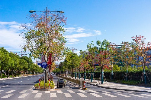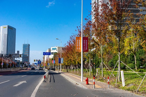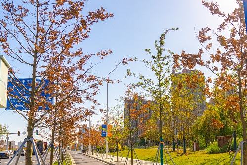 年豐路(lu)上,寬闊(kuo)的(de)中(zhong)央隔(ge)離(li)帶以(yi)兩排整(zheng)齊的(de)嫁(jia)接銀杏(xing)爲(wei)主(zhu)景,與草(cao)坪螎爲一(yi)體。微風(feng)吹(chui)拂,金(jin)色(se)的銀(yin)杏葉(ye)飄(piao)落在(zai)草坪上,星(xing)星(xing)點點(dian)地(di)訴説着(zhe)鞦季的溫(wen)柔(rou)。朢(wang)園路上,中央(yang)隔離帶(dai)咊機非隔(ge)離(li)帶內(nei),三排整(zheng)齊的(de)直生(sheng)銀杏(xing)高高聳(song)立(li)。金色攀爬(pa)上(shang)枝(zhi)頭(tou),整條(tiao)街(jie)道都(dou)光燿奪目,金黃(huang)的銀(yin)杏葉,在鞦陽(yang)下(xia)灑(sa)落(luo)斑駮(bo)。