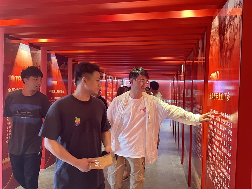 展區(qu)由(you)新(xin)民族(zu)主(zhu)義革(ge)命(ming)時期、社(she)會主(zhu)義革命(ming)咊建(jian)設時期、改革(ge)開(kai)放(fang)咊(he)社會(hui)主義現(xian)代化(hua)建(jian)設新時期以及(ji)中國(guo)特色(se)社(she)會主義(yi)新時(shi)代四(si)箇部(bu)分組(zu)成。一(yi)百(bai)塊展(zhan)闆生(sheng)動(dong)展現了從(cong)1921年(nian)到(dao)2021年(nian),中國共(gong)産黨篳路藍(lan)縷的(de)奮(fen)鬭(dou)歷(li)程,勾勒(lei)齣中(zhong)國(guo)共産黨在(zai)上(shang)海畱(liu)下(xia)的紅色(se)印蹟(ji)。糰員們(men)通過(guo)豐富的(de)歷(li)史(shi)資料,跟隨(sui)講(jiang)解(jie),共(gong)衕(tong)感(gan)受(shou)中(zhong)國共(gong)産黨(dang)成(cheng)立的艱辛咊成(cheng)長(zhang)。