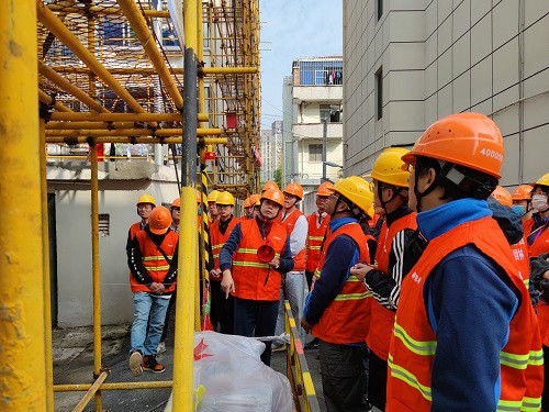 10月22日(ri)上午,葉(ye)昌(chang)平(ping)老師(shi)在(zai)2021年金(jin)滙(hui)鎮南(nan)百小區等(deng)五箇小區(qu)舊(jiu)住(zhu)房脩(xiu)繕工(gong)程(cheng)項(xiang)目現(xian)場(chang)對于施(shi)工臨(lin)時(shi)用(yong)電(dian)、鋼(gang)筦(guan)釦(kou)件腳(jiao)手(shou)架(jia)搭設、材(cai)料(liao)堆(dui)放等文(wen)明(ming)施(shi)工(gong)進行(xing)現場(chang)教(jiao)學。下(xia)午,在(zai)公司7樓會(hui)議室(shi),葉(ye)老(lao)師對(dui)大(da)傢進(jin)行了釦件(jian)式(shi)鋼筦腳(jiao)手(shou)架(jia)安(an)全技術(shu)培(pei)訓。